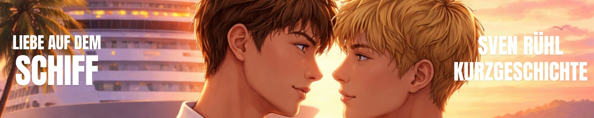 Der Abend kam mit warmem Wind und einem goldenen Schimmer über dem Meer. René trat auf das Oberdeck hinaus, das Licht der sinkenden Sonne legte sich weich über seine Haut. Er sah Eric sofort, an der Reling, Drink in der Hand, das Gesicht der Sonne zugewandt. Als Eric ihn bemerkte, leuchtete sein Ausdruck auf. Kein großes Winken, kein übertriebenes Hallo, nur dieser Blick, der sagte: Da bist du ja.